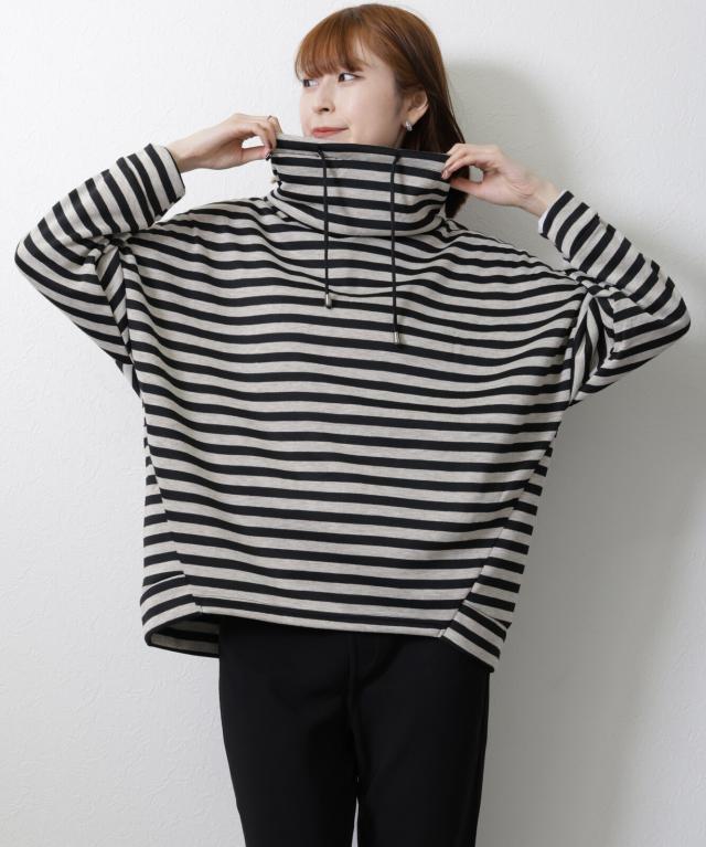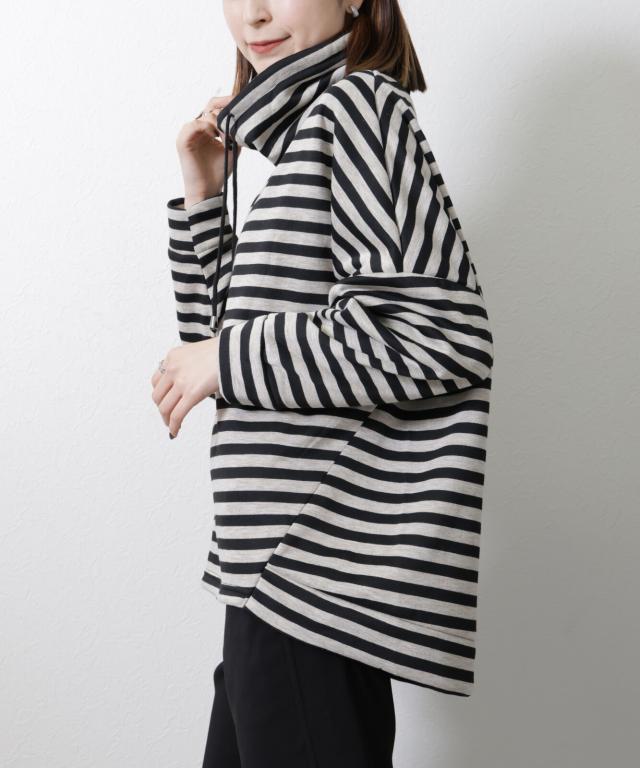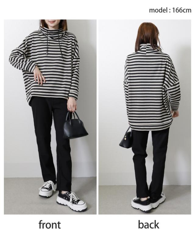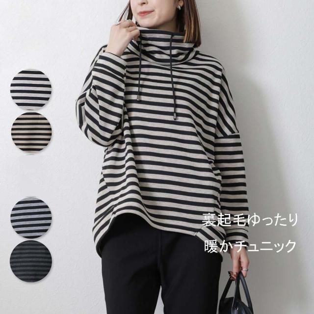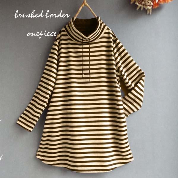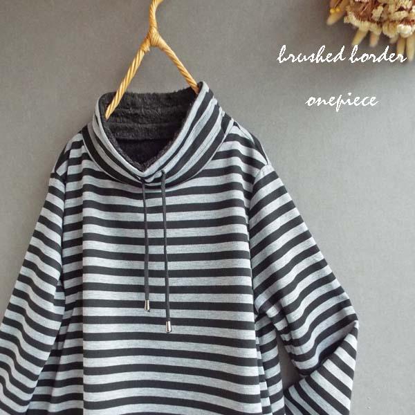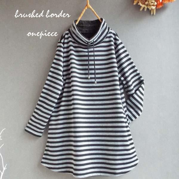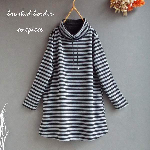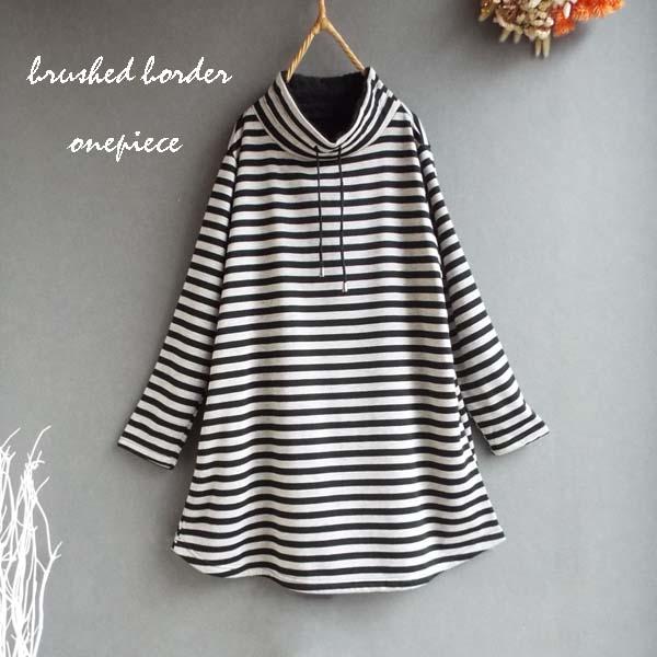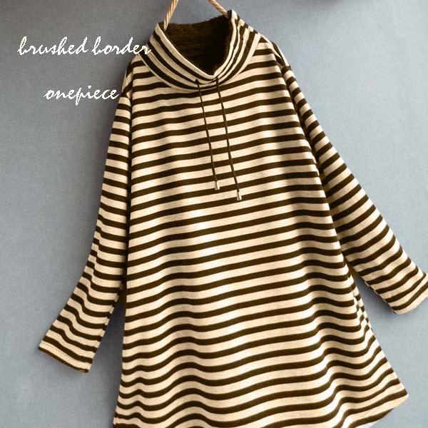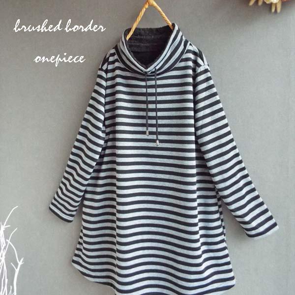 ワンピース レディース ボーダー ゆったり きれいめ 裏起毛 ロング 体型カバー オフタートル 秋 冬 40代 50代 s3732
