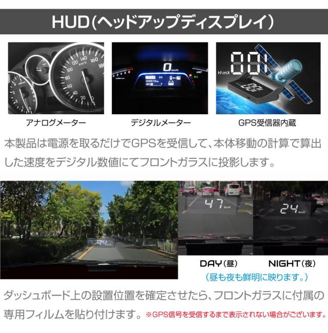 \フロントガラスへ速度をバーチャル表示!/専用スクリーンフィルム付き ヘッドアップ ディスプレイ HUD