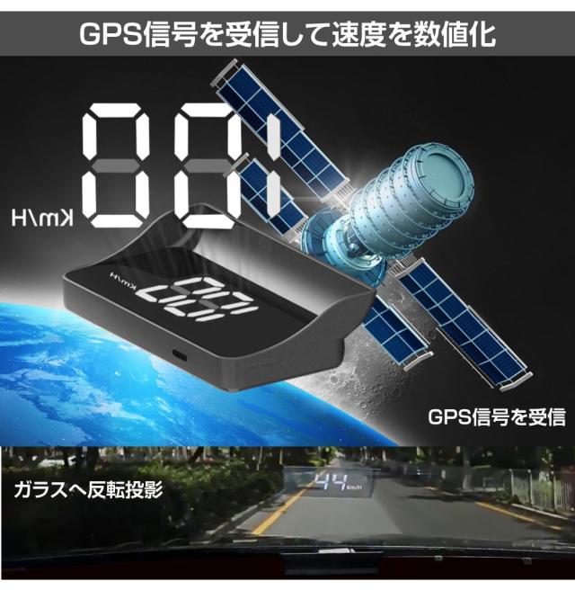 ヘッドアップディスプレイ HUD 車 後付け GPS 投影 フロントガラスデジタルスピードメーター 汎用 AWD-HUD-SP1 | デジタル スピードメーター 速度 配線不要 簡単設置 車載