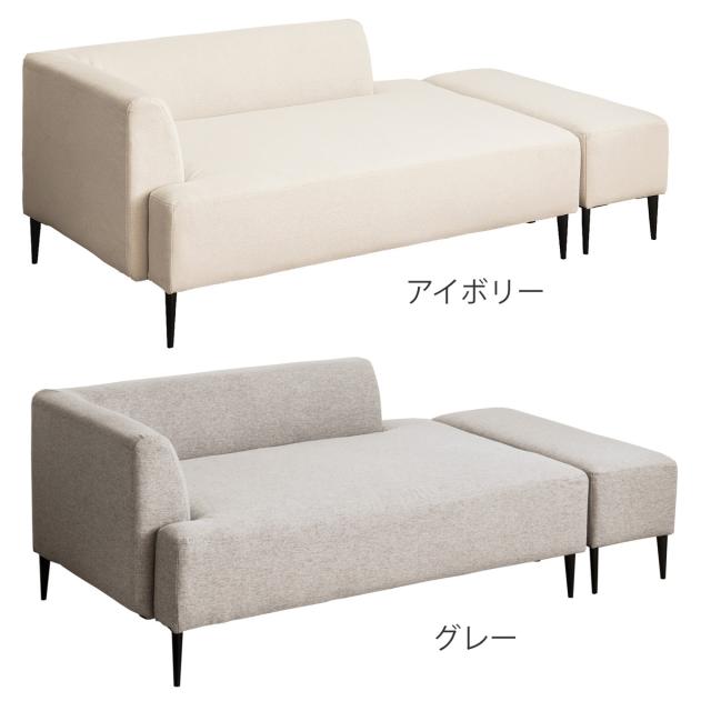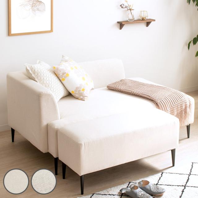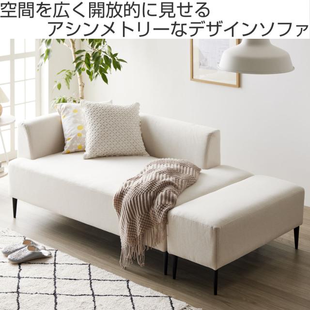 ソファ 2人掛け 幅143cm オットマン付 ワンアームソファ ( 片肘 コーナーソファ カウチ フロアソファ ローソファ 脚取り外しOK スタイリッシュ モダン シンプル モノトーン スチール脚 )
