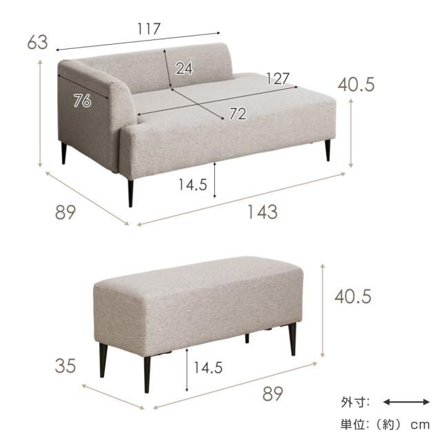 | サイズ | 約 幅143×奥行89×高さ63(cm) 座面高:約 40.5(cm) |