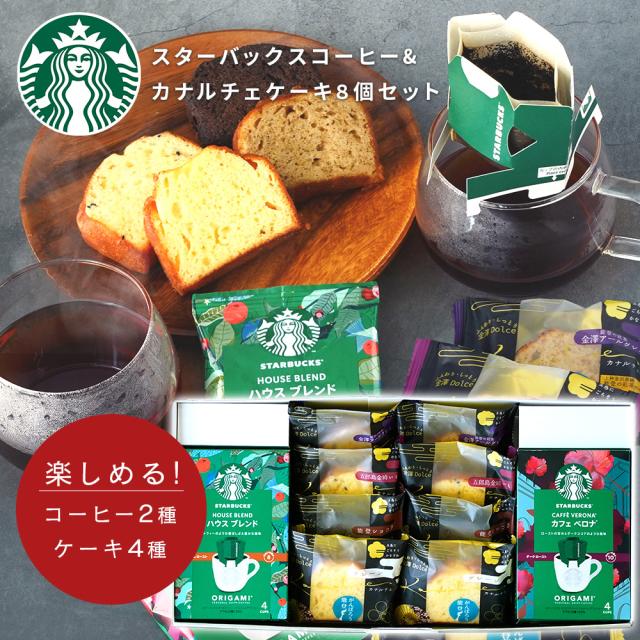 スタバ スターバックスコーヒー2箱 & カナルチェケーキ8個 セット スイーツギフト【ギフトセット 内祝い お礼 お祝い ドリップコーヒー スタバ 金澤兼六製菓 ケーキ お菓子 洋菓子 プレゼント 石川 北陸応援】