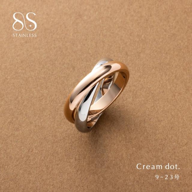 コンビカラーの2連ツイストが存在感をプラスするリング。甲丸の艶やかなメタルリングが手元を洗練された印象に格上げするひと品。どんなコーデともマッチするコンビカラーはひとつあると便利なアイテムです。