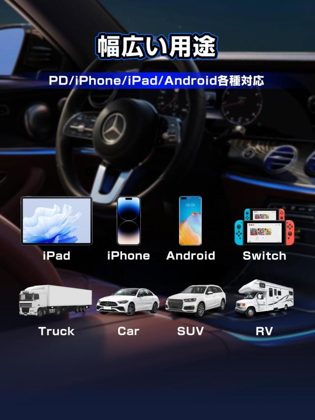 【安全安心設計】 本車 シガーソケットは、特殊な発火しない設計、過電圧/過電流/ショート/過熱に対する多重保護システムを搭載しているため、デバイスや車への負荷が軽減でき、安全な充電ができます。24v シガーソケットの高性能ICで接続端末(iPad/iPhone/Android機器など)を自動で見分けて、最適な出力に調節して急速充電可能です。タイプc カーチャージャー のプラグは非常にしっかりで、でこぼこ道を運転しても飛び出すことがなくて、安心して使用できます。
