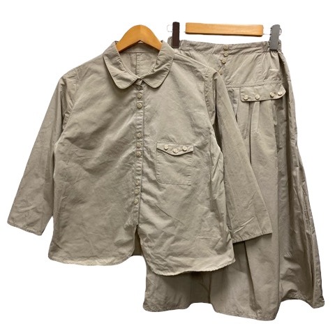【中古】JNプランニング セットアップ ジャケット スカート フレア ナイロン 無地 裏地 長袖 ミディ丈 F ベージュ レディース