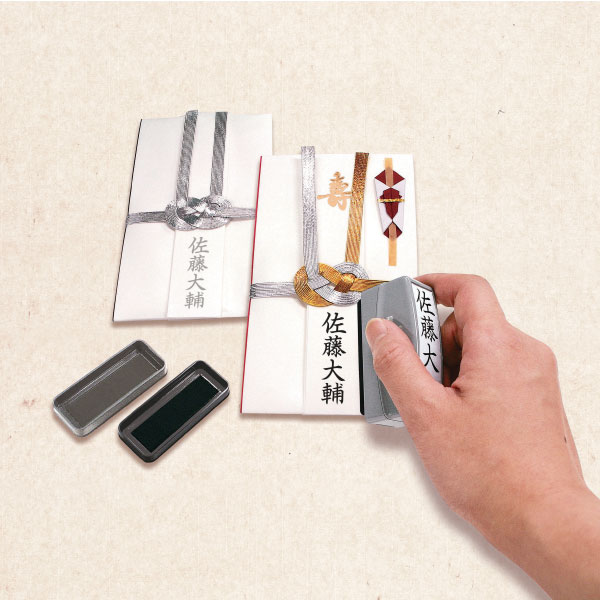 ●慶事用の黒と弔事用の薄墨の2色のスタンプパッド&ゴム印。