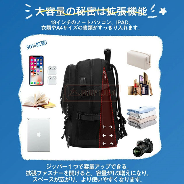 最安挑戦 冬新作 送料無料 新作 リュックサック 大容量 50L 80L ビジネスリュック メンズ バックパック 多機能 軽量 防水 通勤バッグ PC18インチ A4収納 多ポケット アウトドア 拡張機能 靴収納 USB充電ポート付き 地震 災害対策