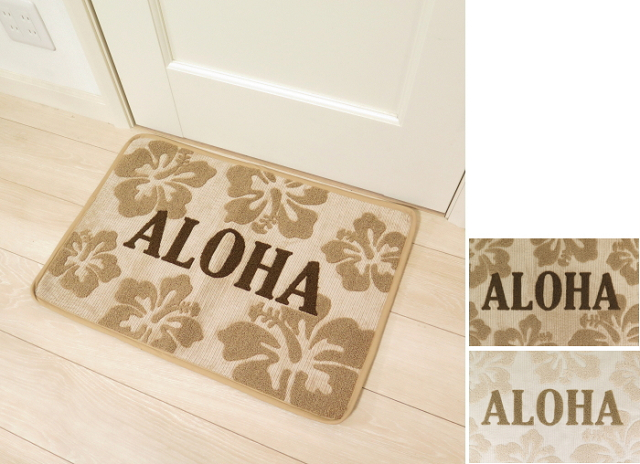 マット インテリア ハワイアン コーデュロイ サガラ刺しゅう リナアロマット ハイビスカス ハワイアン雑貨 秋冬インテリア ハワイ 玄関マット バスマット