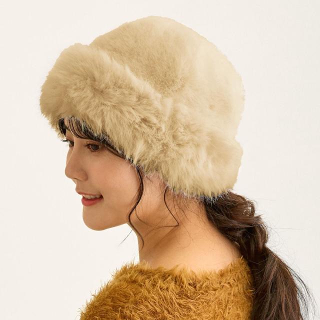 ふんわり丸い ファーハット 帽子 レディース 秋冬 クローシュ ハット 暖かい 小顔 ロシアン帽 58cm たためる hat-1537 婦人 ファッション バケハ 寒さ対策 シンプル 普段使い アウトドア 防寒 エコファー 厚手 防寒帽子 大人っぽい お洒落 女性 プレゼント 即納