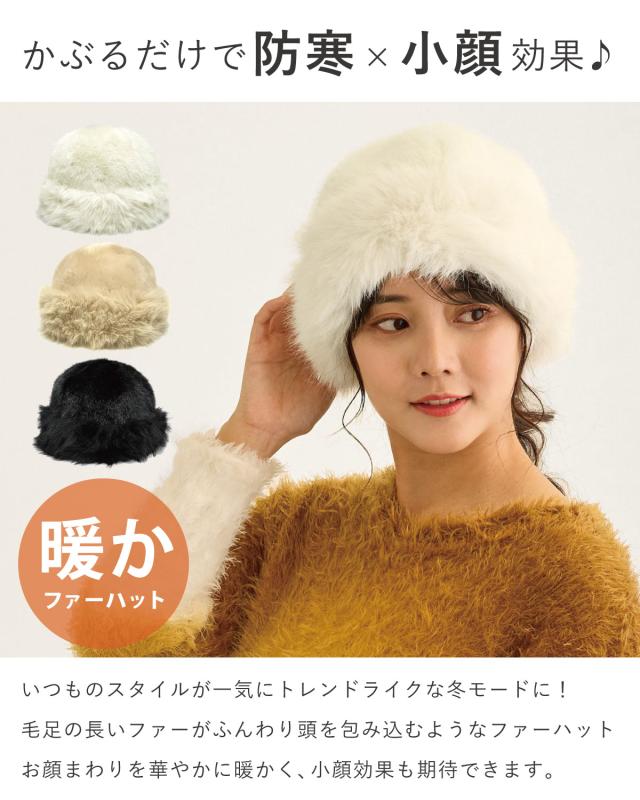 毛足の長いファー素材でボリュームたっぷりのファーハット