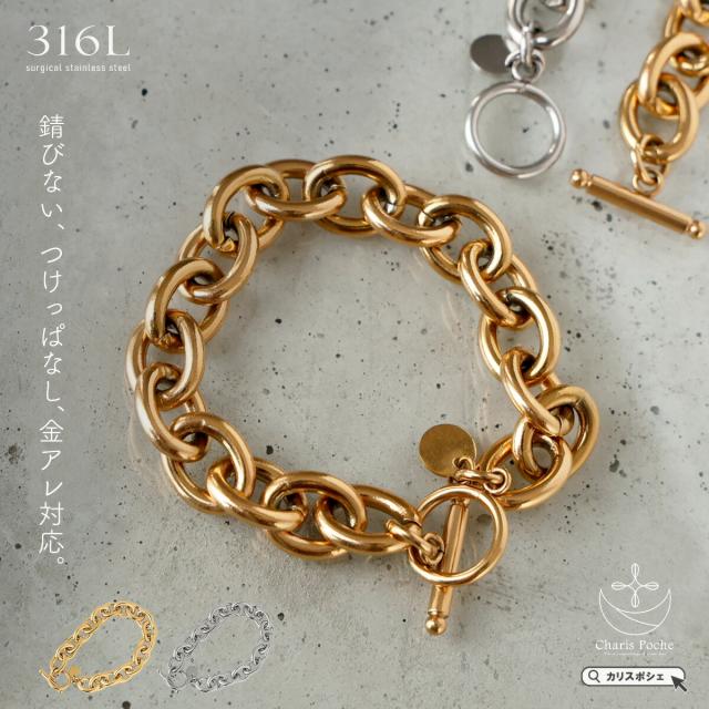 ブレスレット レディース ステンレス チェーンブレスレット ゴールド シルバー 太め マンテル サージカルステンレス 金属アレルギー対応 シンプル アクセサリー ジュエリー 女性 かわいい おしゃれ 人気 大人 ab-snb013