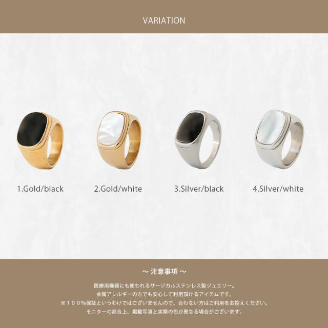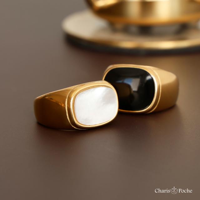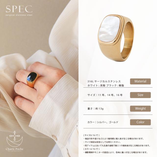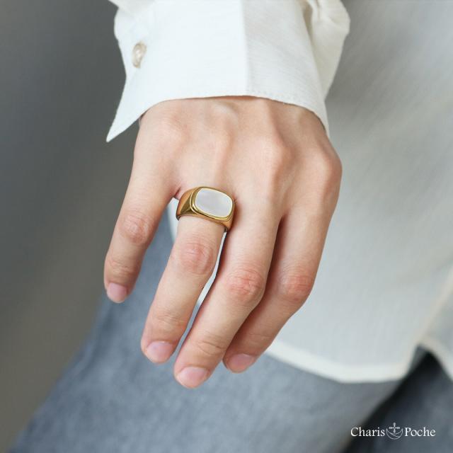 シンプルながらも洗練されたデザインが魅力のスクエアトップリング。316Lサージカルステンレスを使用しており、金属アレルギーの方にも安心してお使いいただけます。ゴールドとシルバーのステンレスリングに、ブラックはアクリル素材、ホワイトはシェル素材があしらわれ、上品なコントラストを演出。ボリューム感のあるデザインは、重ねづけを楽しんだり単品で存在感を引き立てたりと、おしゃれの幅を広げてくれます。女性らしさを引き立てるホワイトシェルやシックなブラックアクリルは、カジュアルからエレガントまで幅広く活躍。