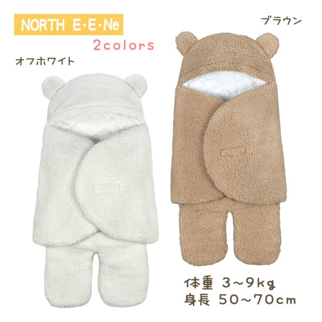 おくるみ 冬 前開き 新生児 ベビー ボア クマ耳 足付き フード付き 着ぐるみ全2色