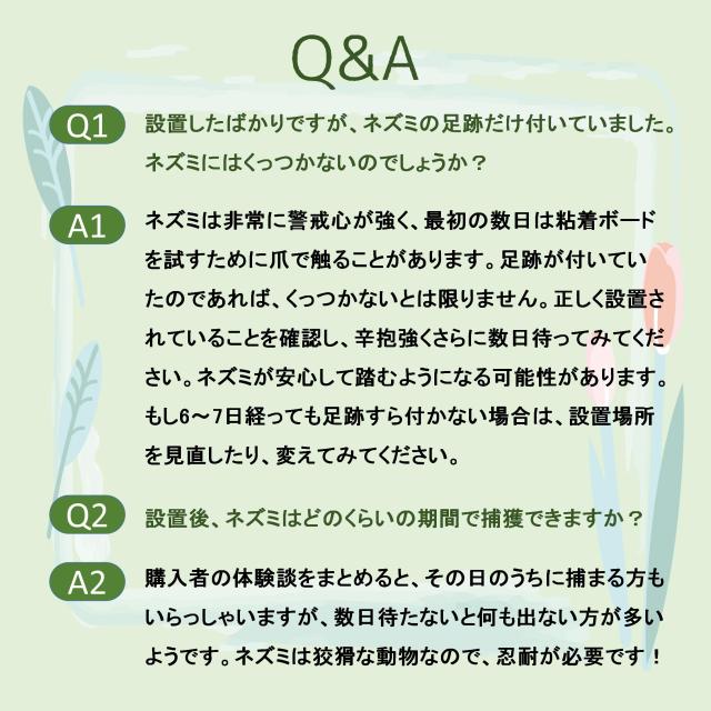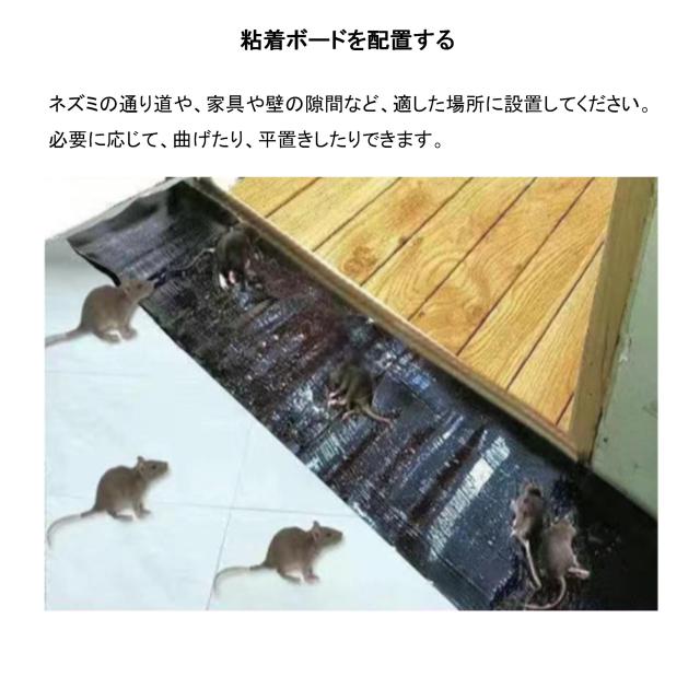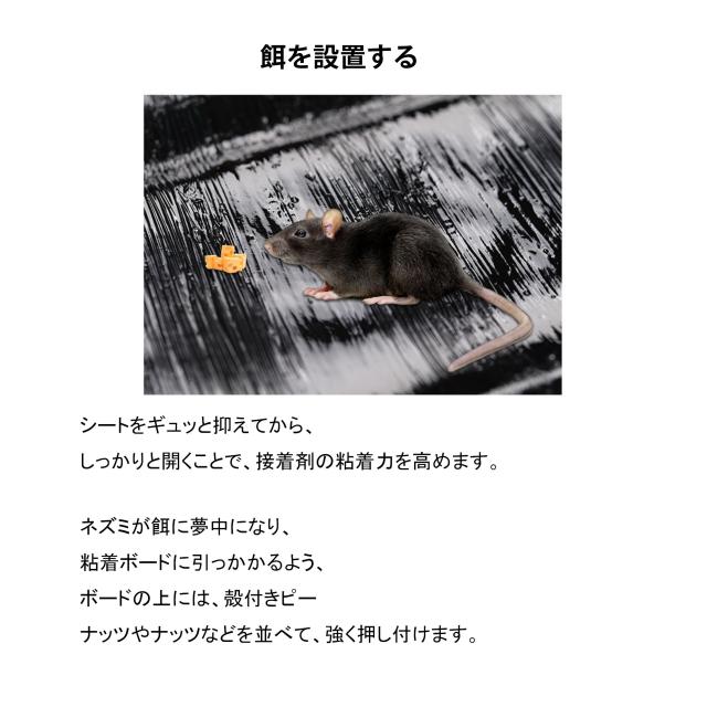 使用方法も簡単で、まずシートを閉じて粘着面を合わせて開き、その上に餌を置いてネズミの通り道に配置するだけ。
