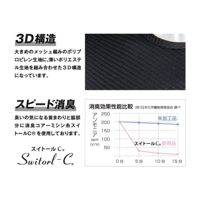 ニオイの気になる首廻りと脇部分に消臭繊維「スイトール」を採用