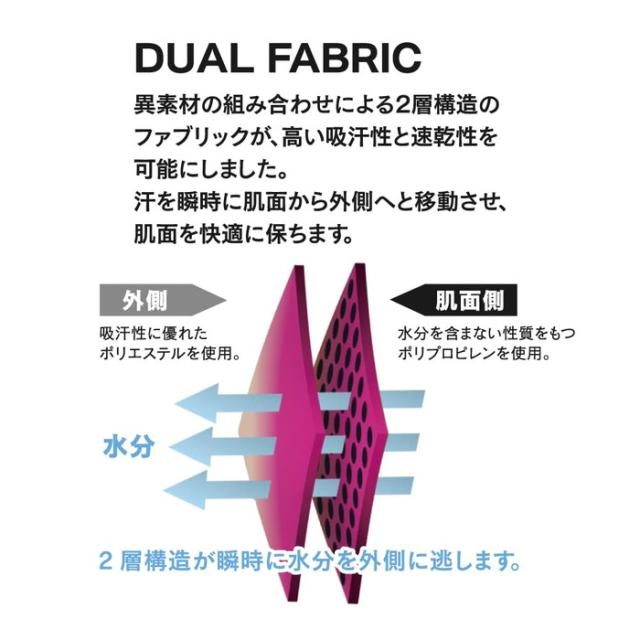 高い吸汗性と速乾性で汗冷えやべたつきを軽減
