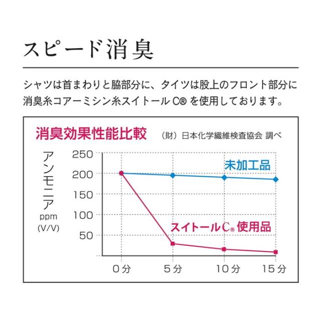 首まわりと脇部分に、消臭コアーミシン糸スイトールC(R)を使用しています。