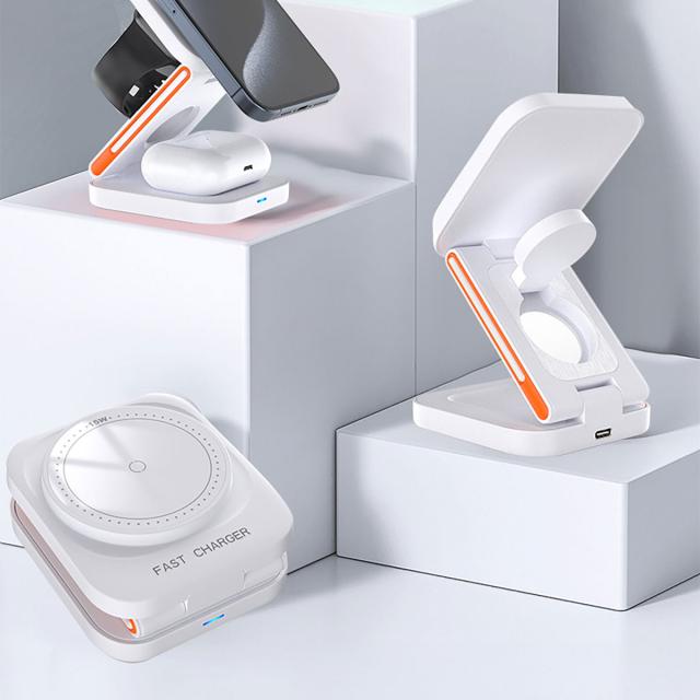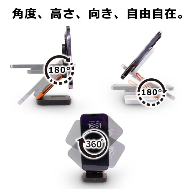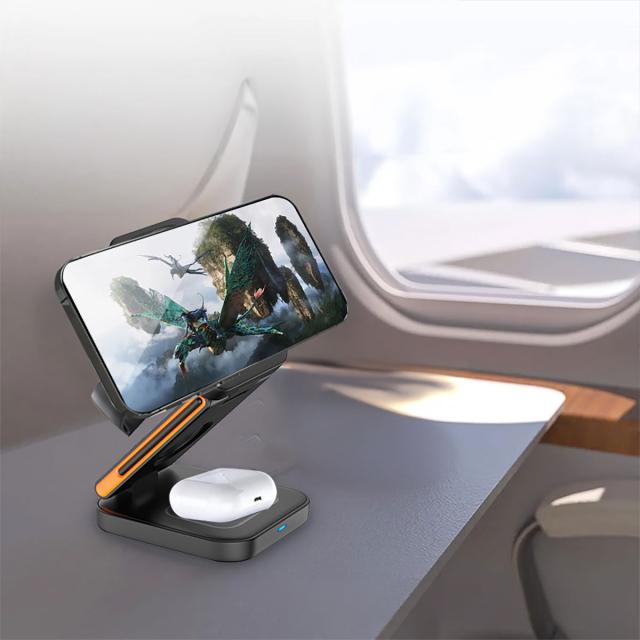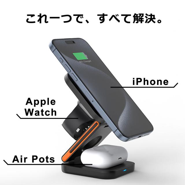 1台3役、コンパクトでパワフル!折り畳める3in1ワイヤレス充電スタンド