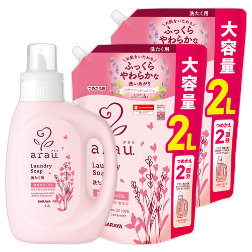アラウ 無添加 洗濯用せっけん 本体 1.2L+詰替用 大容量 2L×2個 液体洗剤 柔軟剤なしでもふっくらした仕上がりに arau. サラヤ(SARAYA)【送料込】