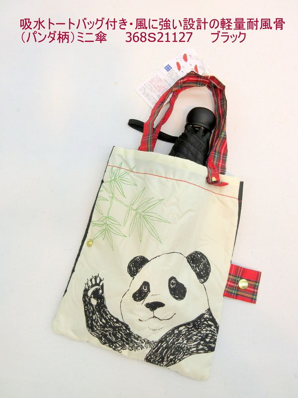 雨傘 傘 ファッション小物 レディースファッション 秋冬 折畳傘 婦人 吸水トートバッグ付き 風に強い設計 軽量耐風骨 パンダ柄 ミニ傘 【送料無料】