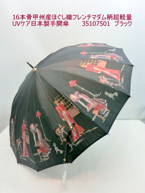 晴雨兼用傘 傘 ファッション小物 レディースファッション 長傘 婦人 16本骨 甲州産 ほぐし織 フレンチマダム柄 超軽量 UVケア 日本製傘 【送料無料】