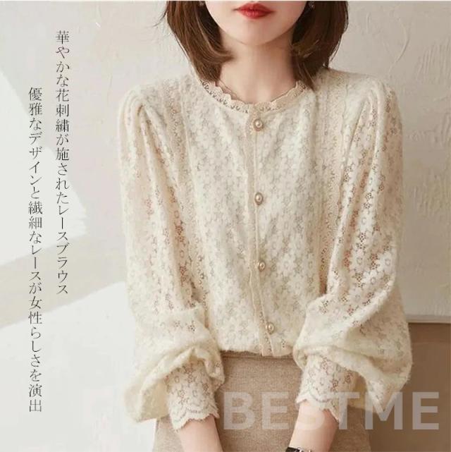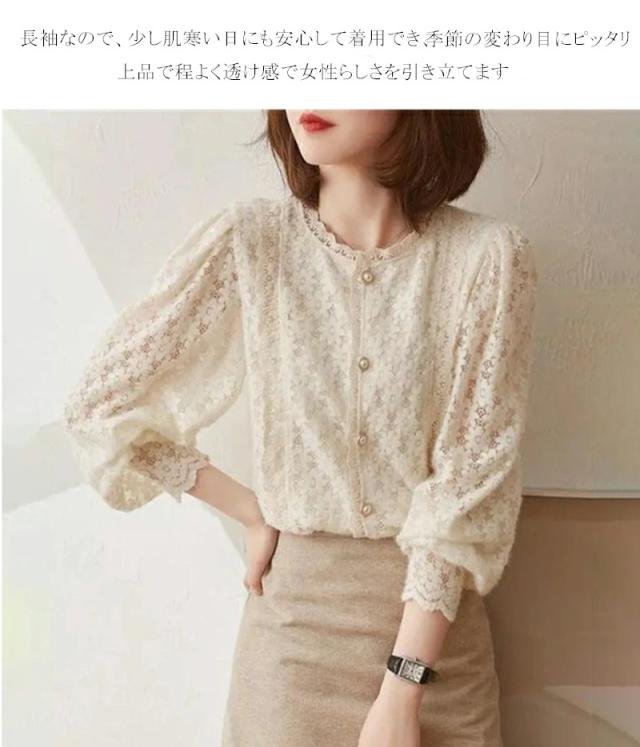 送料無料 トップス レース ブラウス レディース 長袖 春 トップス シャツレースブラウス 花刺繍 花柄 刺繍 カットソー ファッション 通勤 無地 春服 20代 30代 40代 50代 60代 プレゼント