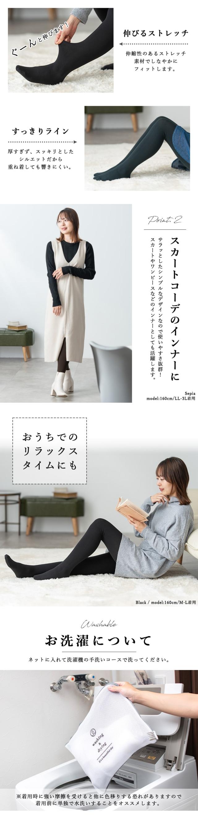 - 厚手、裏起毛であたたかいです!今回、初めて購入しました。LL−3Lを購入しましたが、想像以上に伸びます。身長170cmのぽっちゃり体型ですが、M−Lでも良かったのかなと思うほどです。ゆったり履けて満足...