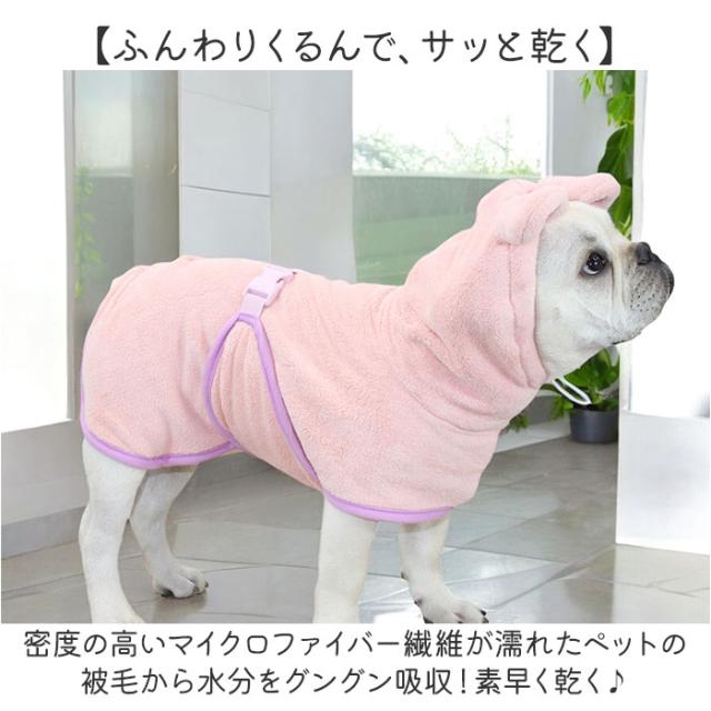 バスタオル ペット用 フード付き 通販 着れるバスタオル 着れるタオル 着れる タオル バスローブ ペット用バスローブ 体拭き用タオル 体拭き 柔らかい やわらかい 耳付き 速乾 吸水
