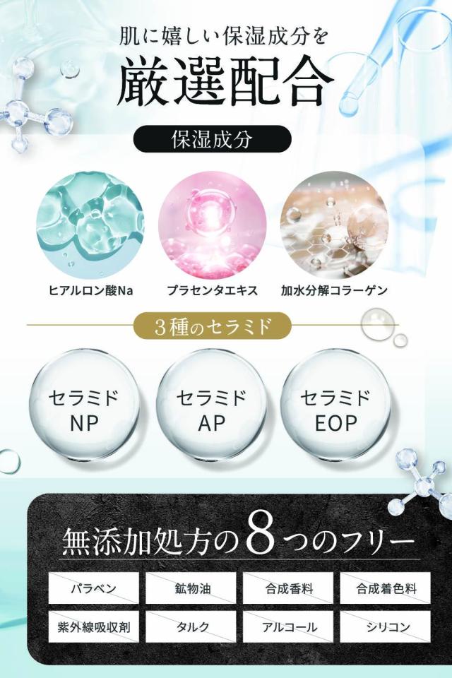 ◆ アルガンオイル、ホホバオイル、シアバター、オリーブ果実オイルなど天然由来のリッチな美容オイルをたっぷり配合。天然由来成分にこだわりながらするっとしたメイク落ちを目指しました。ヒアルロン酸、コラーゲン、3種のセラミド、ビタミンC誘導体、プラセンタを配合し、理想的な保湿力にこだわりました。