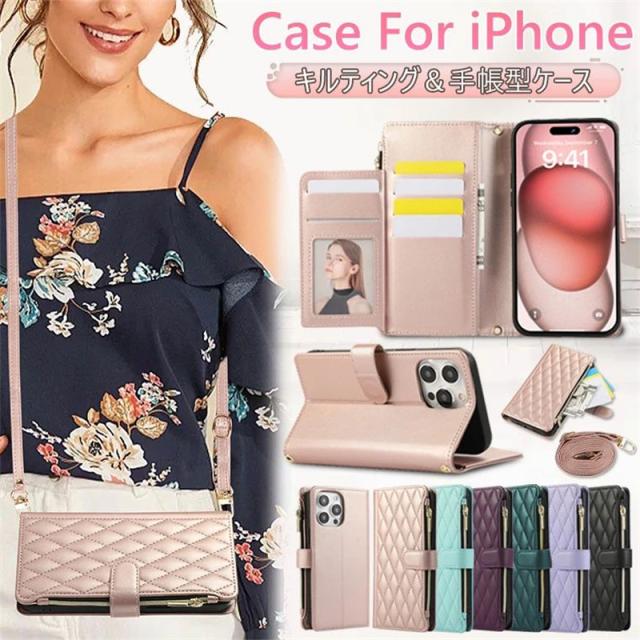 iPhone 17 Pro Max ケース 手帳 iPhone 14 Pro ケース iPhone 16 Pro ケース 手帳型 iphone15 Plus カバー アイフォン 14 Plus 15pro スマホケース 耐衝撃 スタンド機能 カード収納 可愛い オシャレ iphone16e 手帳型ケース ショルダーストラップ付き キルティング