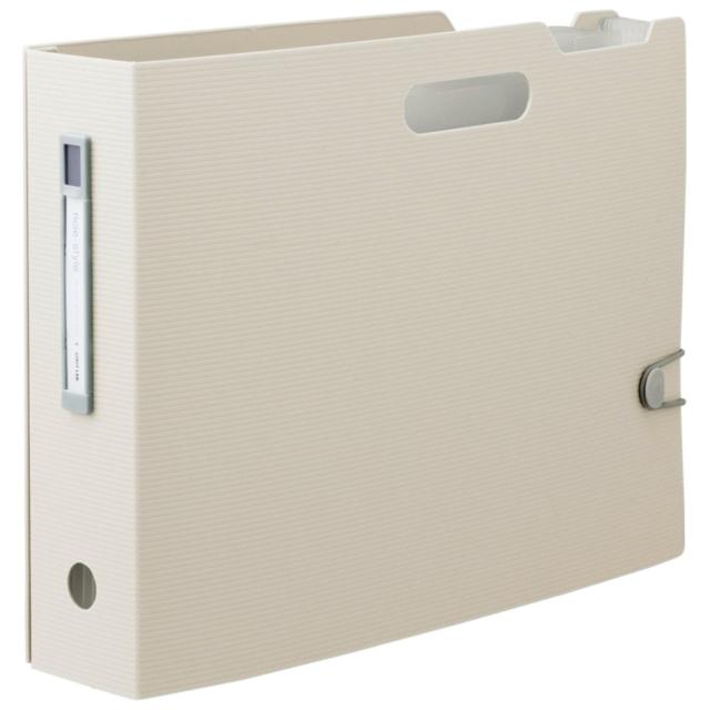 分類・検索性に優れたジャバラタイプのボックスファイル。卓上では大きく広げて使え、しまう時はスッキリ収納。 最大収納枚数コピー用紙450枚。クリヤーフォルダーもそのまま入る。 ポケット上部には検索しやすいインデックス付き。背見出しやドキュメントポケットには付属のシールで色分類ができる。 表紙の開きを押さえるゴムバンドが付いているので、表紙を閉じれば書庫にスッキリ収納できる。
