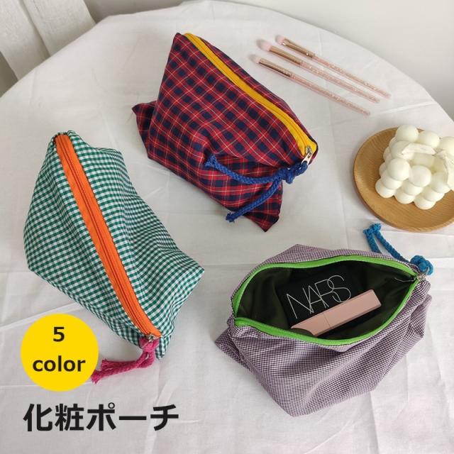 化粧ポーチ メイクポーチ コスメポーチ 小物入れ ペンケース 文房具入れ メイクアップポーチ チェック柄 かわいい おしゃれ