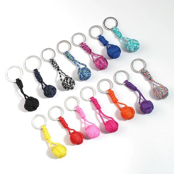 ミリタリーパラシュート生地のロープとボールキーホルダー パラコードストラップ付きのキーホルダー トレッキング スカイ サバイバル アウトドア