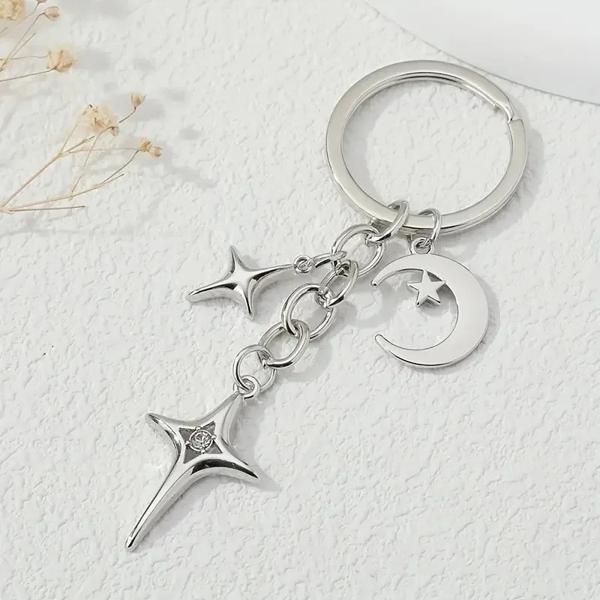 ファッションスタームーンアロイキーホルダーレディースラメカップルキーホルダーデイリージュエリー