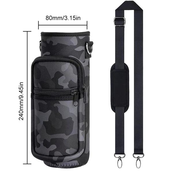 携帯電話用スリーブ付きウォーターボトル スポーツボトル用ポケット 調節可能なストラップ付きスポーツケース 断熱材 1000ml