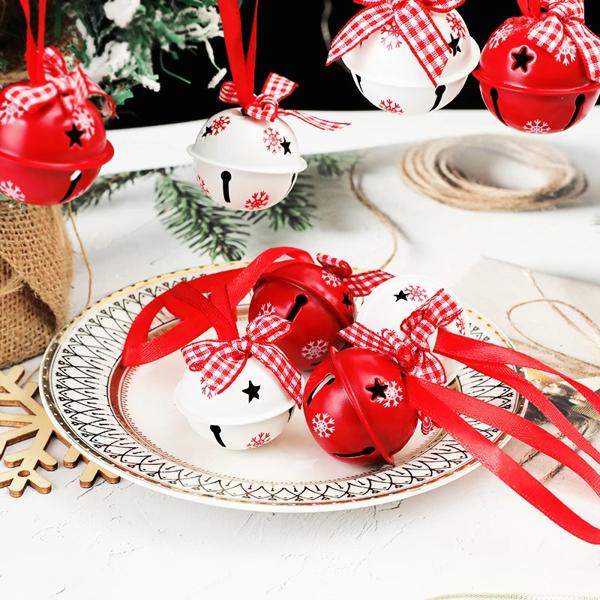 蝶ネクタイ付きクリスマススノーフレークジングルベル クリスマスツリーメタルベル DIYハンギングペンダント 新年ナビダッド装飾 12個