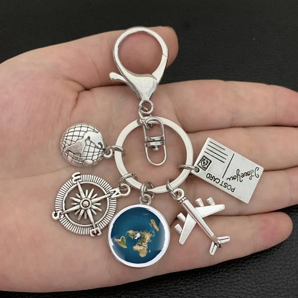 地球の飛行機のキーホルダーペンダント地球のコンパス個性個性旅行愛好家のためのキーリングギフト