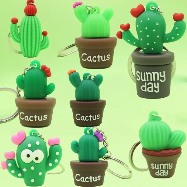 K5124サボテンキーホルダー 柔らかいビニール袋のペンダント 緑の鉢植えの植物 pvc 車