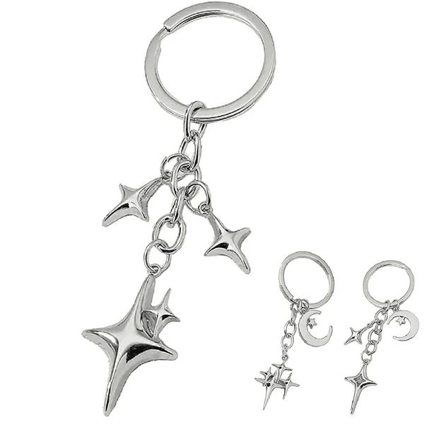 女性と男性のための星と月のあるメタルキーホルダー 手作りのジュエリー 友情の贈り物 ハンドバッグの装飾 1個