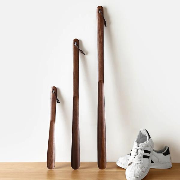 靴 靴 アクセサリー用のプロの黒い無垢材の靴リフター 長いハンドル付きの靴