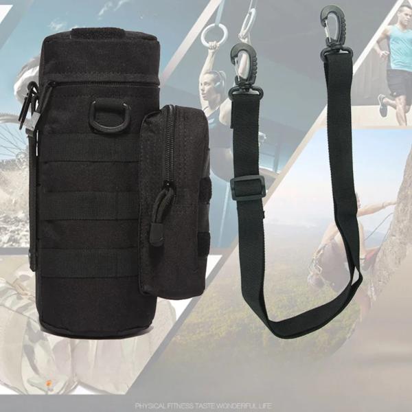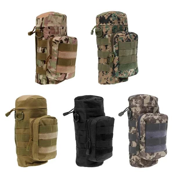 タクティカルフラスコ キャンプ ハイキング 釣り用のポケット付きポータブルハンギングバッグ