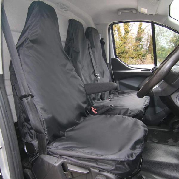 フォードトランジットカスタムバン2013以降用にカスタマイズされた防水ヘビーデューティシートカバー | ドライバー & ダブルセット、ブラック