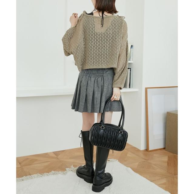 クロップド丈のニットやざっくりカーデを合わせた韓国っぽいスタイリングがおすすめ。
