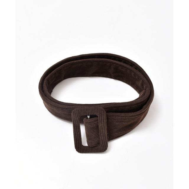 共布を使用した太ベルトがウエスト周りのアクセントになり、スタイリングを引き締めてくれます。