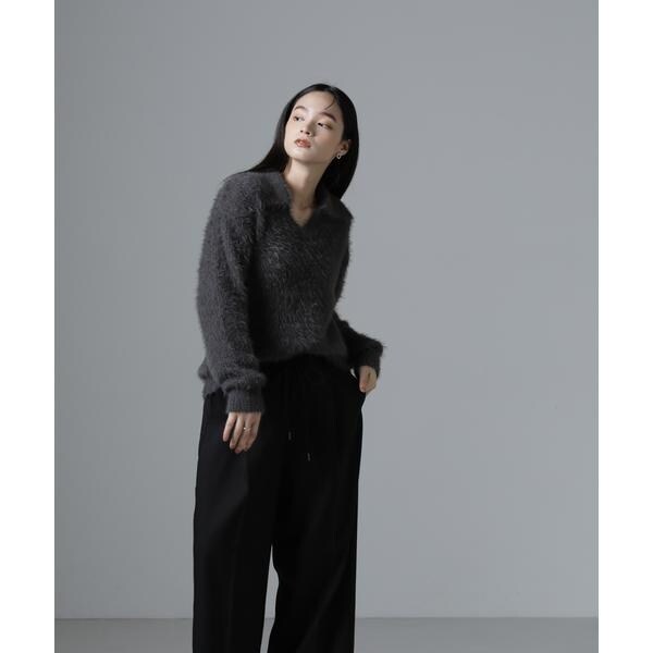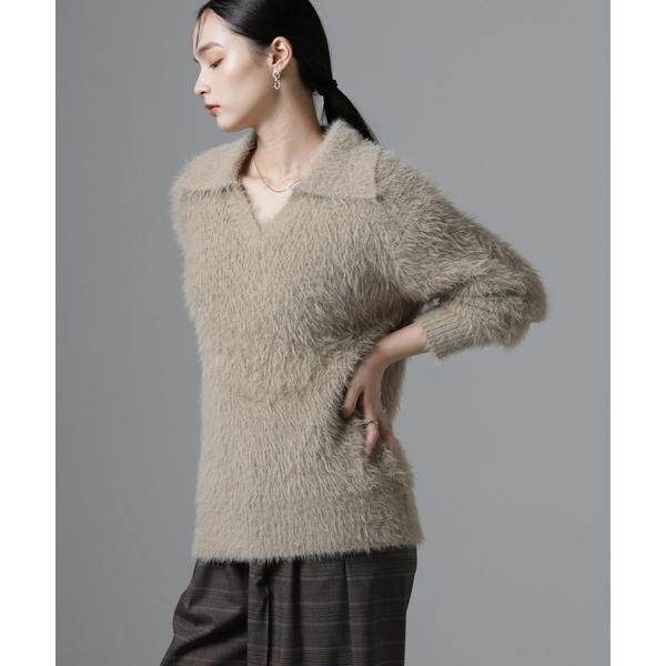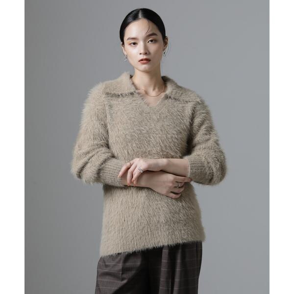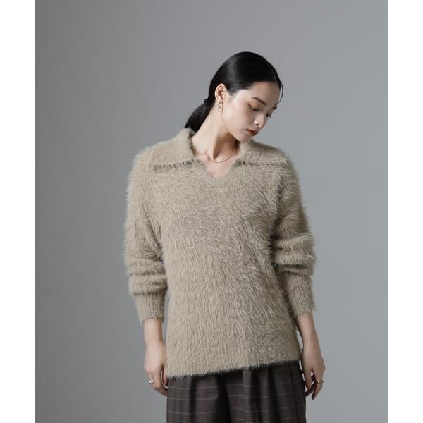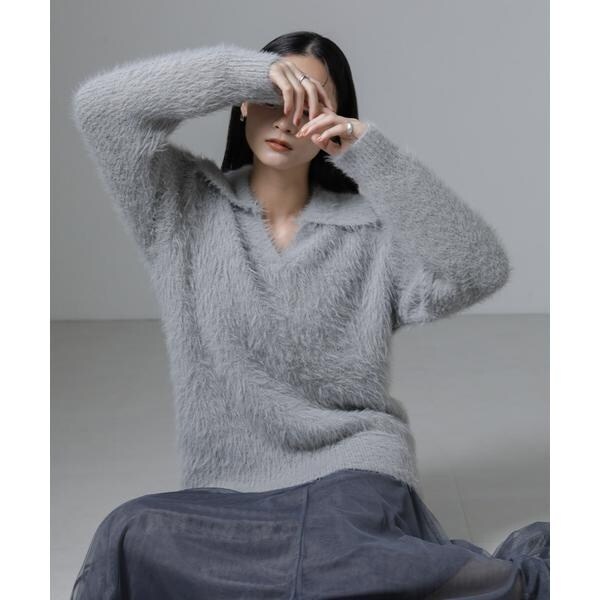 衿付きヘアリーニットプルオーバー