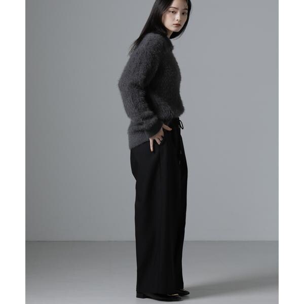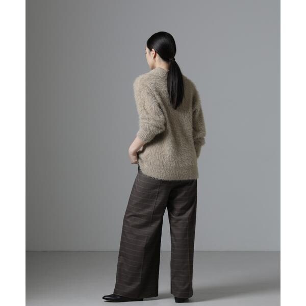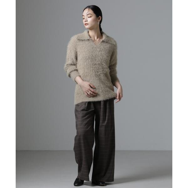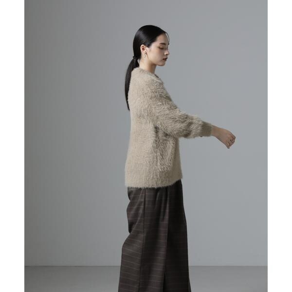 シーズンムードを高めるニットプルオーバー。素材に特徴のある長めの毛足感が目を惹くアイテム。ネックレスも映える絶妙な衿ぐりの開きが、顔まわりをスッキリ見せてくれる一枚です。