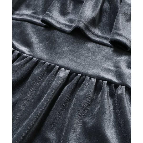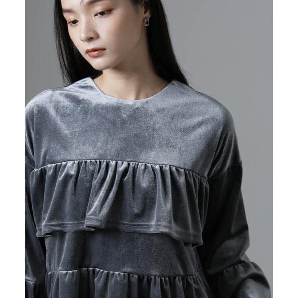 優雅なフリルと柔らかなベロア素材が上品な印象に◎