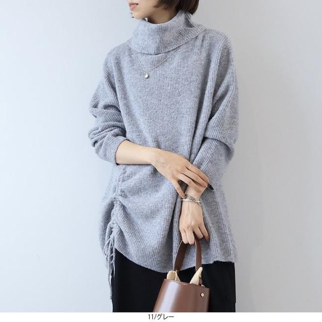 シンプルなオフタートルに、ドロストのディテールで程よくトレンドを取り入れたニットプルオーバーです。
