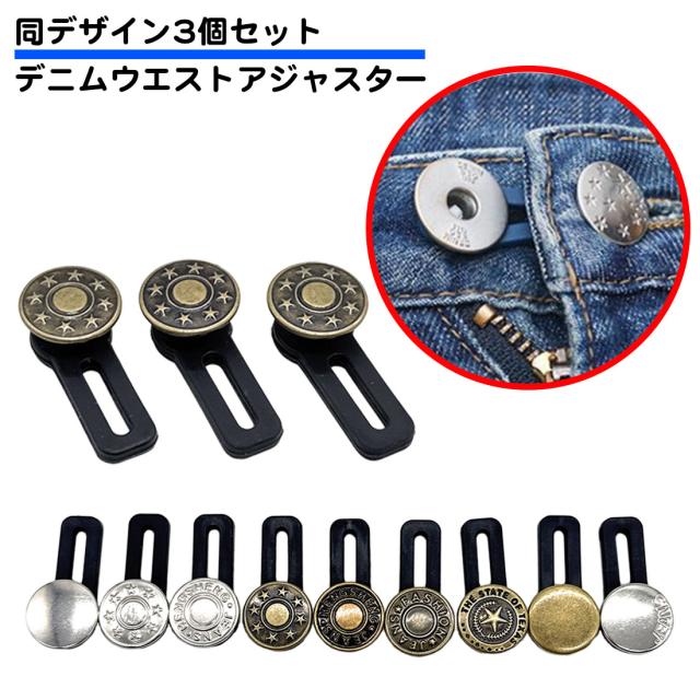 3個セット ズボン ウエスト調整ボタン ウエストアジャスター 延長 サイズ調整 拡大 お直し ジーンズ デニム パンツ 簡単 ワンタッチ ボタン つけるだけ DIY 送料無料