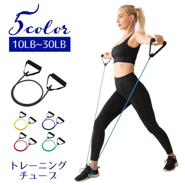 トレーニングチューブ エクササイズバンド ヨガロープ フィットネス 筋トレ スポーツ用品 持ち手付き ストレッチ ダイエット 伸